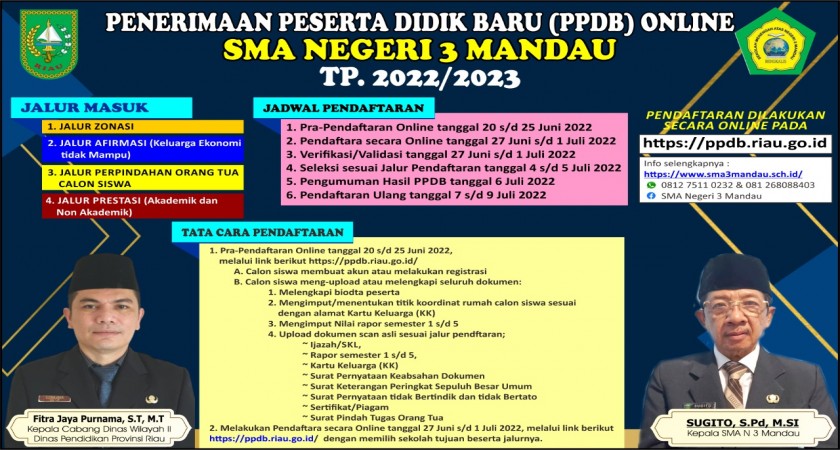 PENERIMAAN PESERTA DIDIK BARU (PPDB) SMAN 3 MANDAU TP. 2022/2023