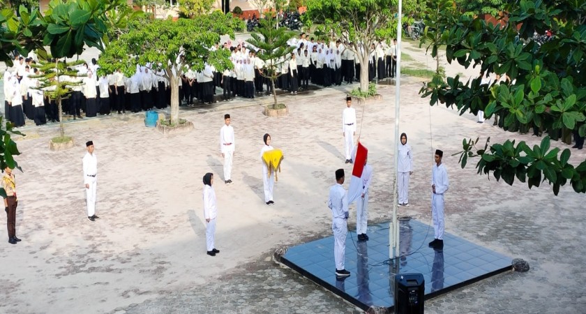 Kepala SMA NEGERI 3 MANDAU ASLIM, S.Pd, M.Pd, memimpin upacara dan menyampaikan pidato Menteri Pendidikan, Kebudayaan, Riset, dan Teknologi, Nadiem Anwar Makarim. Pidato tersebut berisi capaian transformasi selama tiga tahun terakhir di bidang pendidikan yang telah dicapai melalui program Merdeka Belajar.